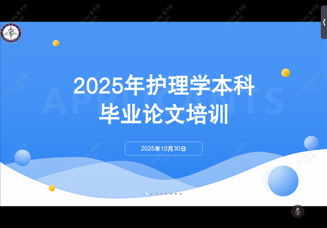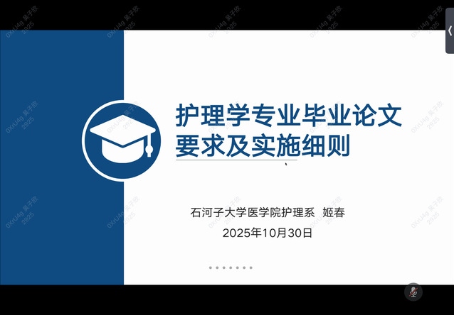 为规范2026届护理学本科毕业论文工作,明确开题报告撰写要求,2025年10月30日20:30,色情网站 通过腾讯会议举办“2026届护理学本科毕业论文安排及开题报告撰写培训”,2026届护理本科毕业论文指导老师及2026届护理学专业学生参与本次培训,此次培训由姬春老师主持。