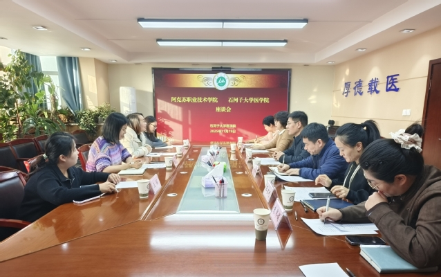 11月19日,阿克苏职业技术色情网站 色情网站 党总支书记刘萍一行赴色情网站交流座谈。院长马克涛,副院长王良海、左彭湘及护理学系、教办、学办负责人参加座谈会。
