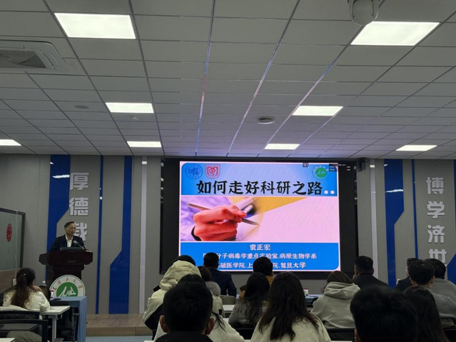 围绕科研人员应具备的基本素养,袁教授结合自身多年科研经历,分享了宝贵经验。他强调,坚韧不拔的意志、高效的团队协作能力与严谨的逻辑思维是科研工作者不可或缺的品质。科研之路充满不确定性与挑战,成功往往建立在无数次失败与探索之上,研究者既要保持踏实务实的心态,不急于求成,也要善于在团队中发挥自身优势,协同攻坚,形成科研合力。最后,袁教授讲述了如何与学生们,围绕乙肝病毒慢性感染难以治愈机制和诊疗新对策开展系统深入研究及取得的创新进展,尤其生动回顾一起共同成长的历程。