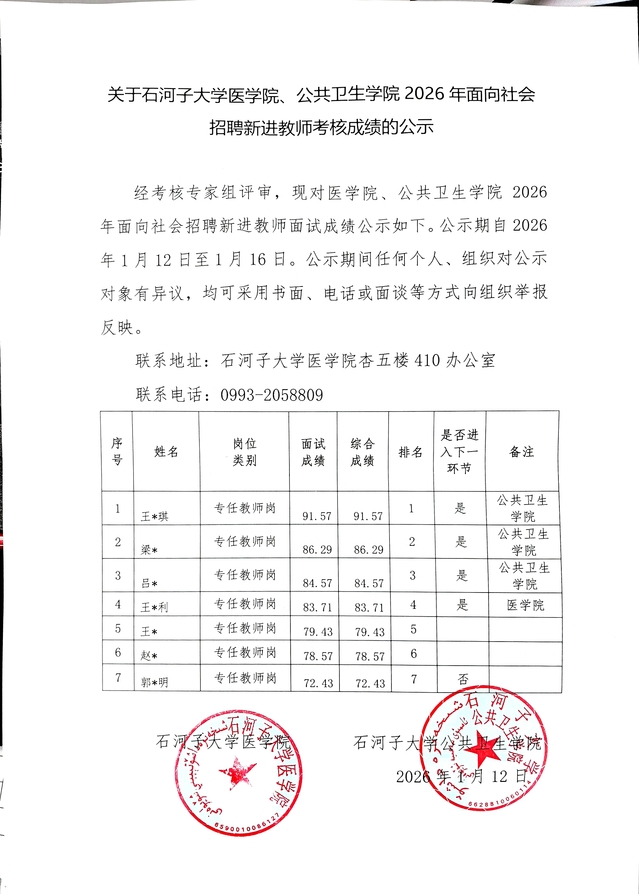 关于色情网站 、公共卫生色情网站 2026年面向社会招聘新进教师考核成绩的公示