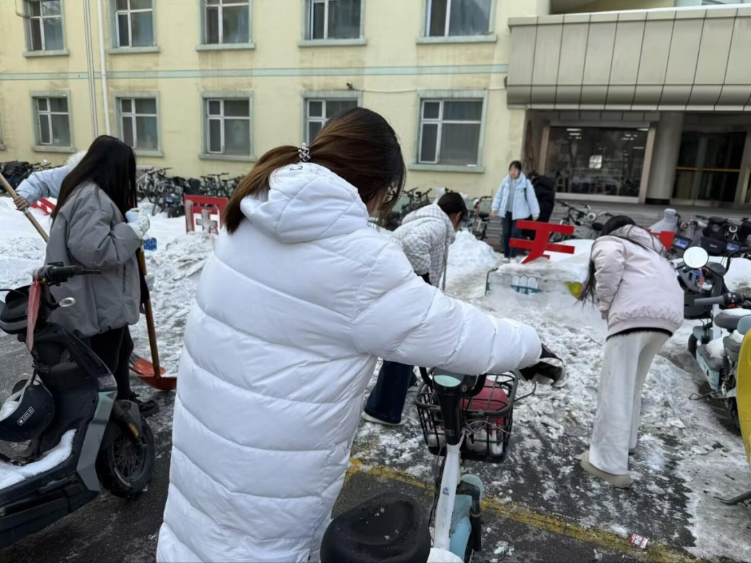 活动当天,志愿者们准时集结,在工作人员统一安排下迅速分工、有序行动。大家不畏严寒、热情高涨,手持铁锹、扫帚、推雪板等工具奔赴各自区域,充分展现了青年学子积极向上、乐于奉献的精神风貌。