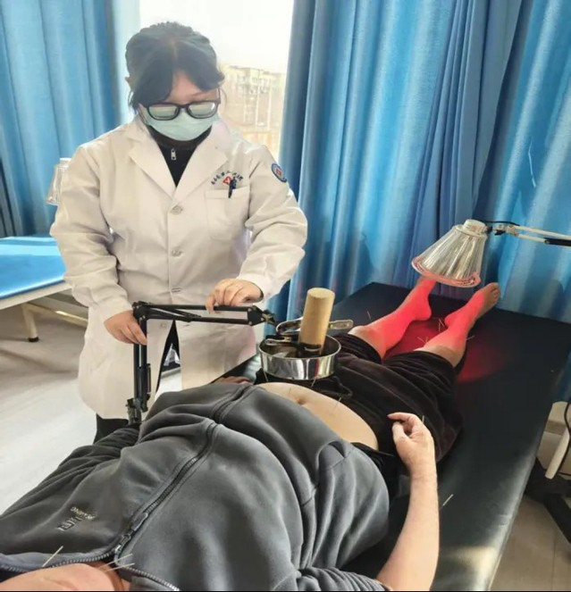 王晴同学在南乐县第二人民医院使用医疗器材对患者进行治疗