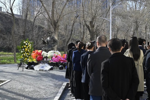 默哀毕,学生代表缓步走向潘世征将军雕像,敬献花篮,以庄重的仪式寄托对先烈的深切哀思与崇高敬意。