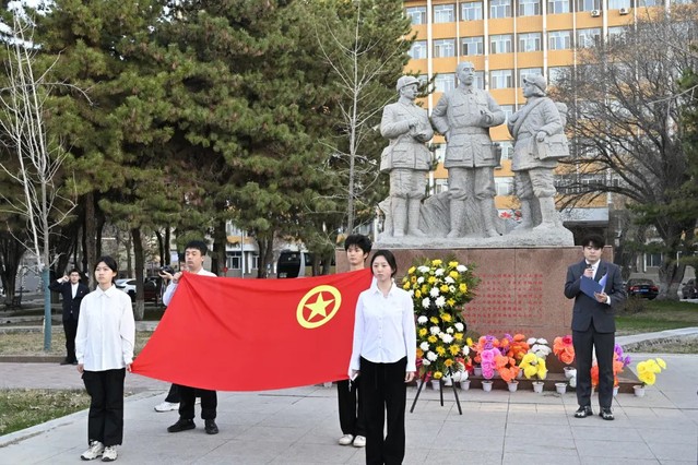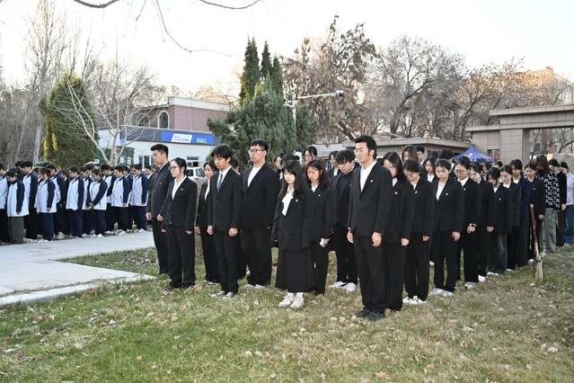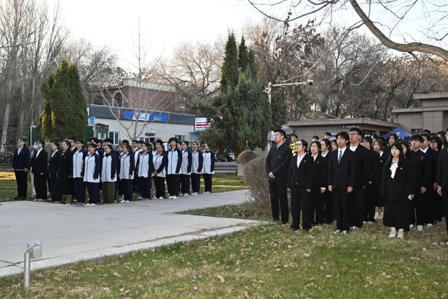 默哀毕,学生代表缓步走向王震将军雕像,敬献花篮,以鲜花寄哀思,向革命先烈致以崇高的敬意。
