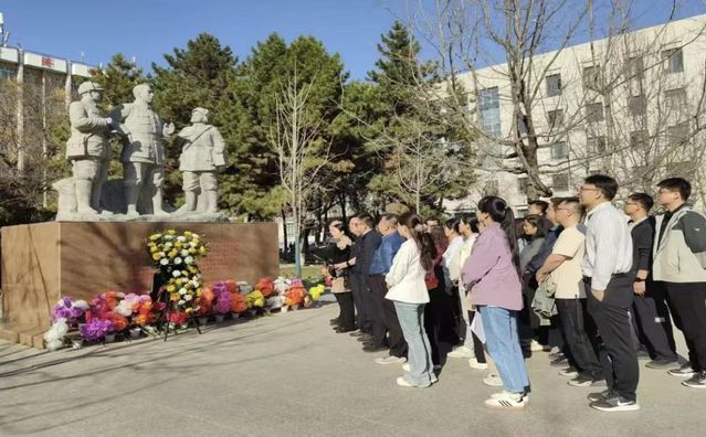 活动现场庄严肃穆,王震将军雕像巍然矗立,生动镌刻着老一辈军垦战士屯垦戍边、建设边疆的峥嵘岁月,承载着全体教师对革命先辈的深切崇高敬意与深切追思。老师们列队肃立,以庄重仪式缅怀先烈、寄托哀思。