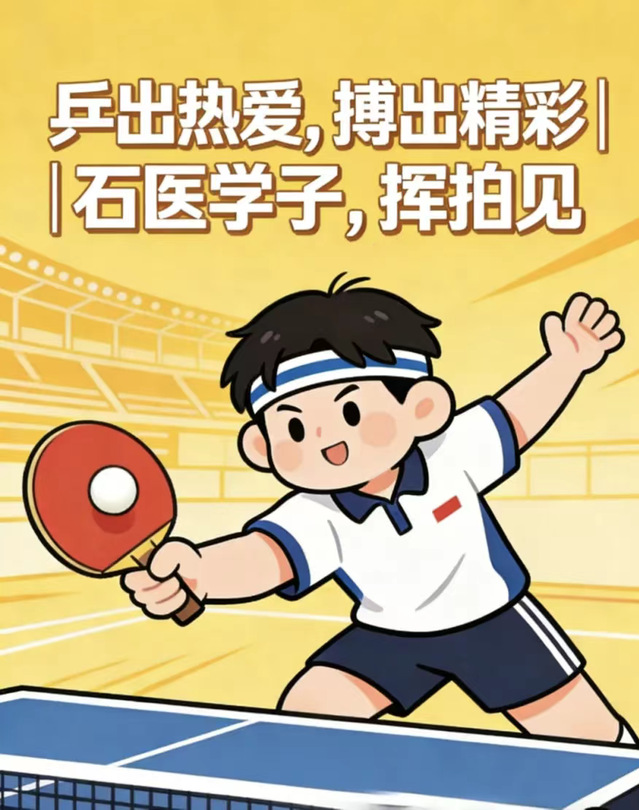 为丰富校园文化生活,点燃青春运动热情,充实球队新鲜血液,传承国球拼搏精神,打造一支活力满满、并肩作战的乒乓球队,现面向院学子火热纳新!无论你是球场老手还是热爱萌新,只要心怀热血、热爱乒乓,就快来加入我们,一起挥拍逐光,具体要求如下: