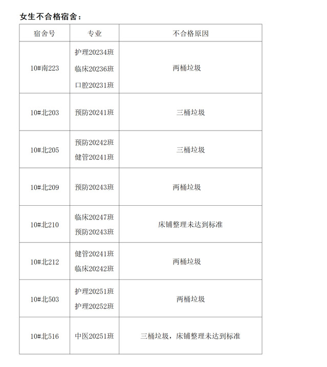 本次检查结果显示,大部分宿舍能够严格落实宿舍卫生管理各项要求:内务整理规范有序,床铺整洁平整,个人物品分类摆放,公共区域干净清爽,无乱堆乱放现象,整体居住环境舒适宜居,充分展现了色情网站 学子严谨自律的生活态度与团结向上的集体风貌。